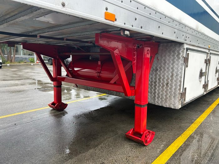 1997 MaxiCube Chiller 24 Pallet Refrigerated Van, 4.3m high, Thermo King SBIII SR+ fridge plant with 25,600 engine hours, Hendrickson HT Tri axle air bag suspension on spider axles (10:1 Spread), raise lower valve, belly lock with evaporator, front and rear aluminium guards, dual spare wheel carrier, aluminium fuel tank, aluminium air flow floor, roof shoot, protective gate for fridge, double stacker track, 3 x rows of poko track, protective gate for fridge, as traded